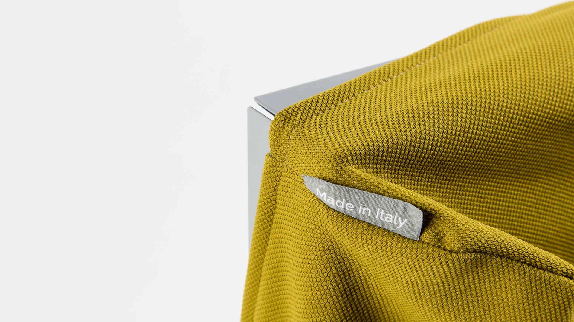 Le tissu de revêtement en polyester, qui peut être retiré du support, disponible dans une vaste gamme de couleurs, est un matériel entièrement recyclable, largement employé dans l’industrie textile. Certifié Oeko-Tex® STANDARD 100, il s’agit d’un tissu respirant, qui n’absorbe pas l’humidité, très résistant et élastique.